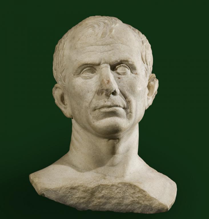 Légende : buste en marbre attribué à César, découvert en 2007 dans le Rhône à Arles