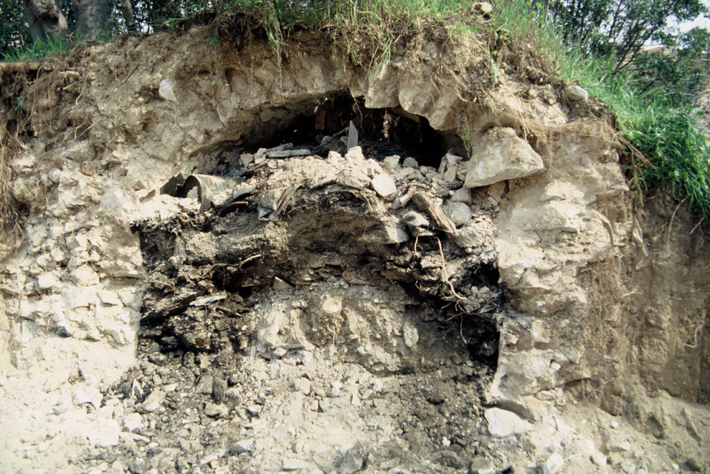 Vue rapprochée des tuiles gallo-romaines découvertes lors de la construction d'une boulangerie.