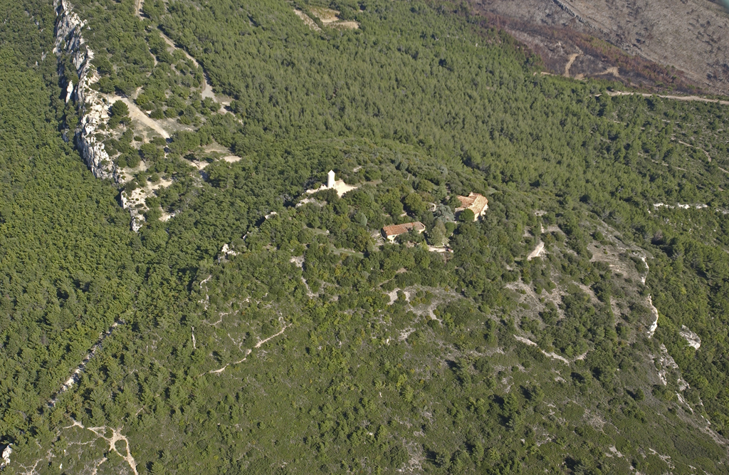 Vue aérienne de l'oppidum et du monastère de Saint-Jean-du-Puy