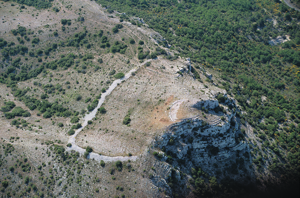 Vue aérienne de l'oppidum de l'Age du fer construit sur un ancien habitat fortifié du néolithique final