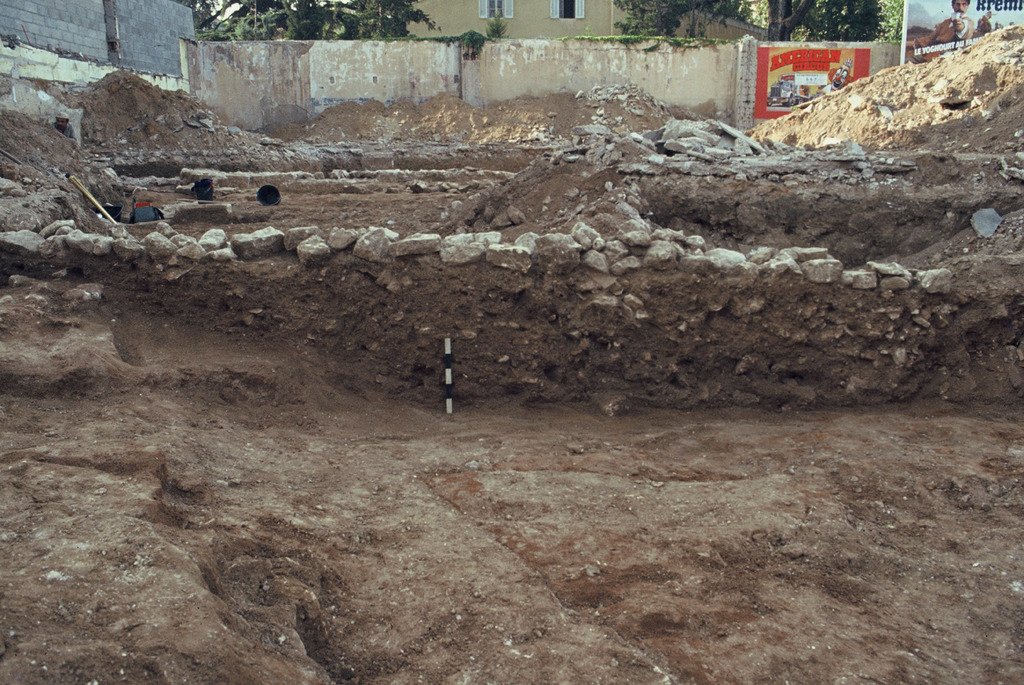 Vue rapprochée prise du nord de la coupe sous le mur 006.